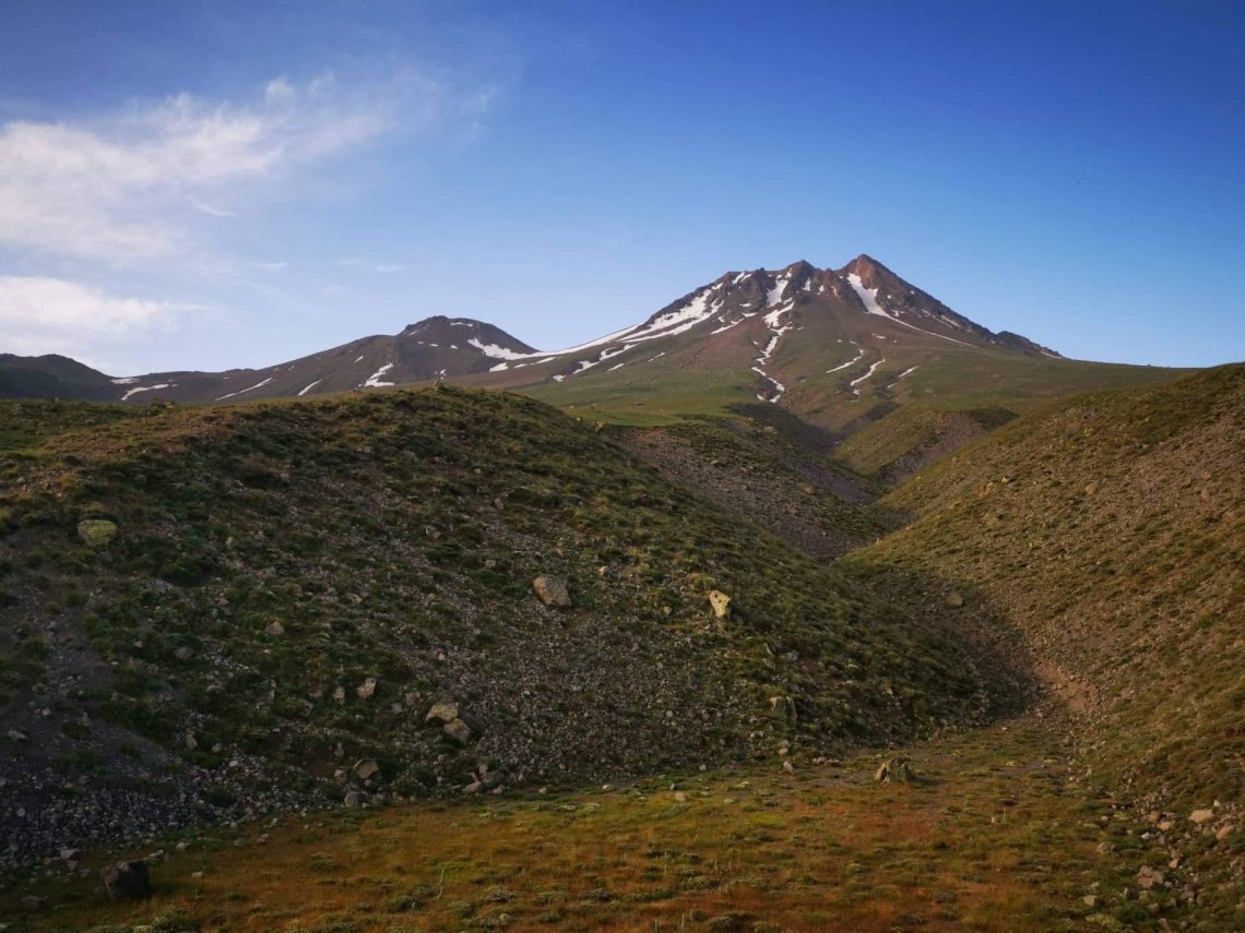 Ráno vyrážame. 3253 metrov vysoká hora Hasan Dagi je tak úchvatná, že ju musíme zdolať. Nástup pod kopec zvládame, hoci s vyplazeným jazykom (teda okrem Tomáša, ktorý sa ani nespotil). Značený chodník by sme hľadali márne. Každý sám sa vydávame hľadať najschodnejšiu cestu cez skalné zosuvy a snehové polia. Úspešne.