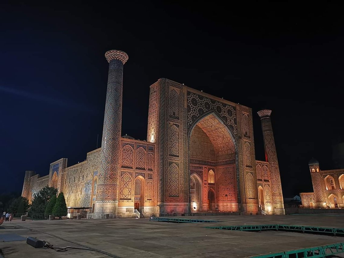 Človek je tvor spoločenský. Na každého však občas príde chvíľa, kedy potrebuje byť chvíľu osamote, iba so svojimi myšlienkami. Ja som si na moje “hlboké úvahy” nemohol nájsť lepší čas, ani miesto. Nočný Samarkand je magický. Pri troche predstavivosti môžete preniknúť pod hrubú škrupinu moderného veľkomesta a vrátiť sa v čase do dôb krutého Amira Timúra, či jeho vzdelaných a pre vedu nadchnutých potomkov. Zo zasnenia ma preberá strážnik, ktorému sa nepáči, že sa pomedzi Madrásy Registanu prechádzam bez vstupenky. Sorry kámo, veď ja už utekám.